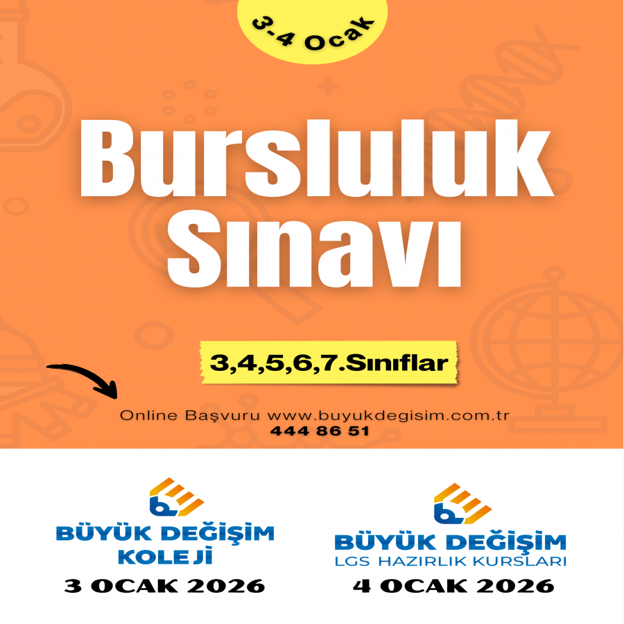 Her yıl düzenlenen yaz kursumuz 17 Ağustos'ta başlayacak ve okullar açılana kadar devam edecektir. 4,5,6,7 ve 8.sınıf öğrencilerimizin kabul edildiği Büyük Değişim Yaz kursunda yeni dönem konularına giriş yapılacak ve öğrencilerin döneme hazır başlamaları sağlanacaktır. https://forms.gle/EeyY79Fr2cFZfBTV6